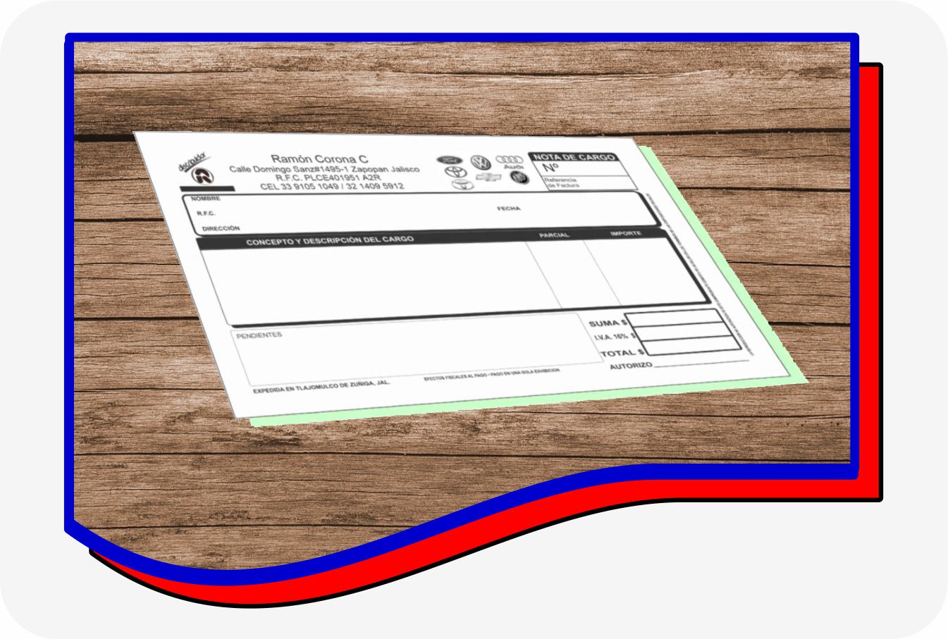 FORMATO IMPRESO NOTA TAMAÑO CARTA, EN ORIGINAL Y COPIA CON PAPEL AUTOCOPIABLE, PUEDE LLEVAR FOLIO.